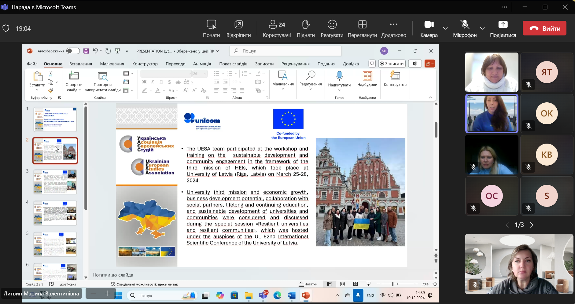 10 грудня 2024 р. відбулась #unicom ONLINE майстерня «Європейські практики реалізації третьої місії Університетів» в рамках проєкту Еразмус+ КА2 Universities-Communities: strengthening cooperation – Erasmus+ project