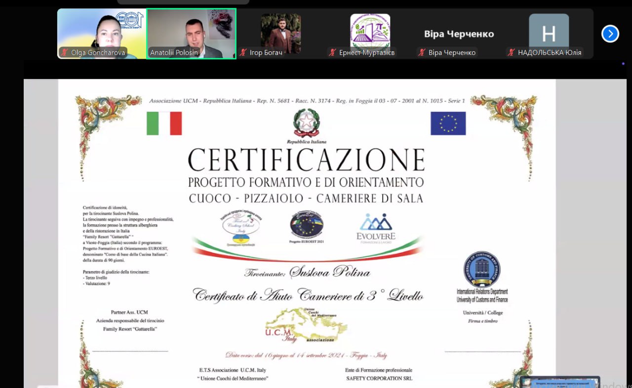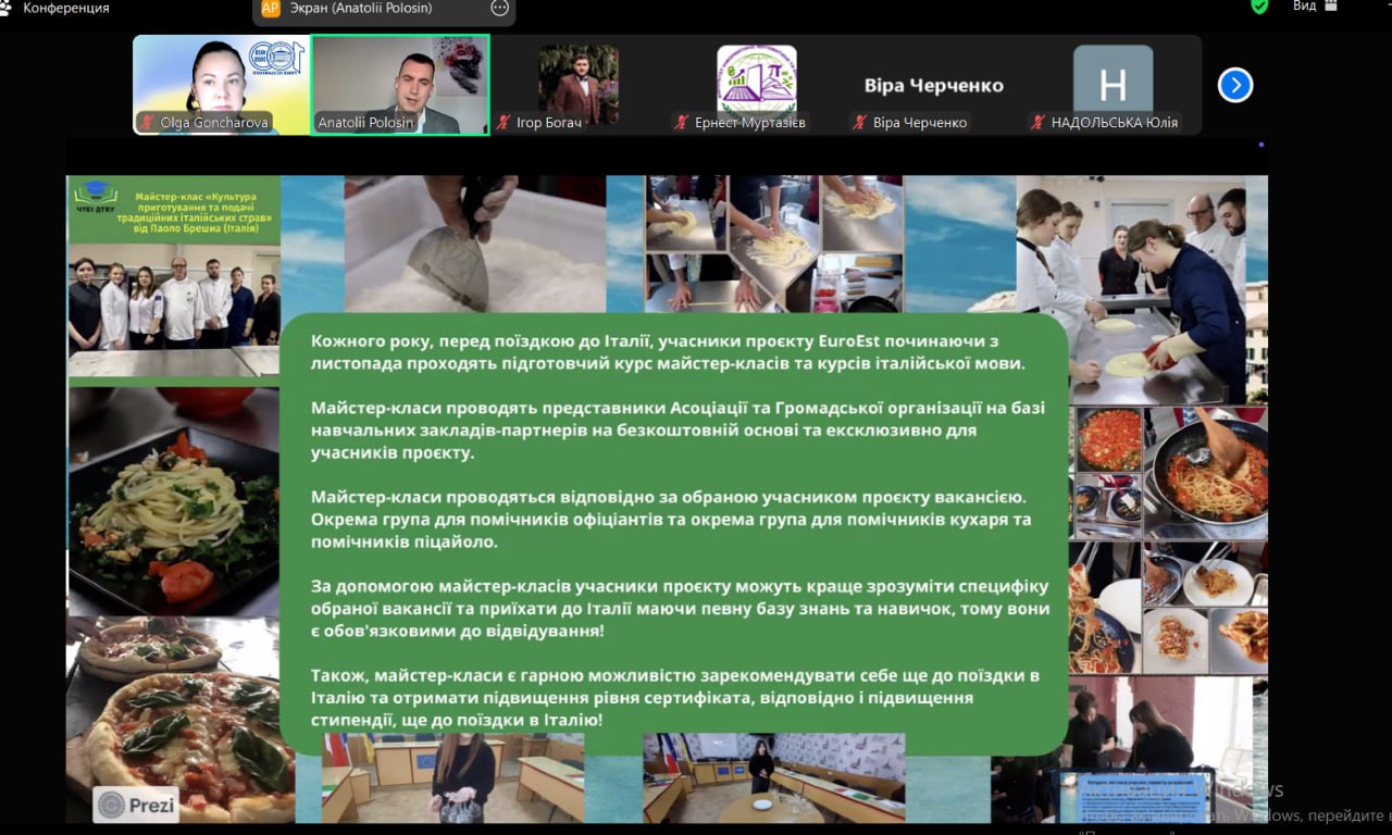 22 листопада 2024 року для здобувачів вищої освіти МДПУ імені Богдана Хмельницького Відділом міжнародних зв’язків та проєктної діяльності було проведено презентаційну зустріч із представниками проєкту EuroEst. На зустрічі було анонсовано можливості проходження літньої практики в Італії, яка дозволяє не тільки вивчати італійську мову безкоштовно, але й допомагає зробити перші кроки в готельно-ресторанному бізнесі та отримати чудову базу для подальшого професійного розвитку.