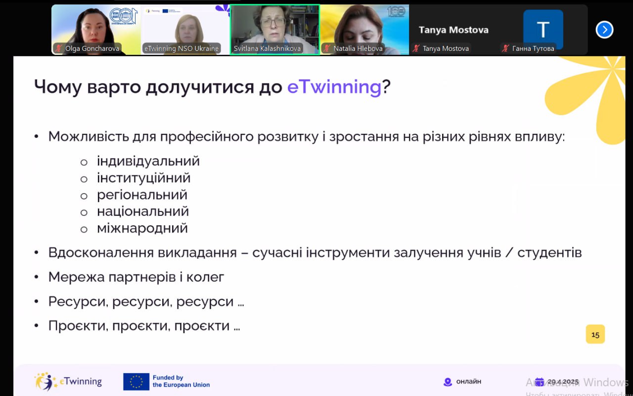 29 квітня 2025 року відбулася консультативна зустріч щодо приєднання команди Мелітопольського державного педагогічного університету імені Богдана Хмельницького до Програми eTwinning, яка була започаткована Європейською Комісією у 2005 році як майданчик для спільноти освітян та розвитку співпраці у сфері освіти.
