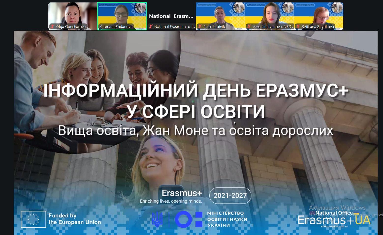 Команда МДПУ імені Богдана Хмельницького розпочала свою участь у низці заходів, організованих Національним Еразмус+ офісом в Україні. Так, першим заходом став «Інформаційний день ЕРАЗМУС+ у сфері освіти: вища освіта, Жан Моне та освіта дорослих», який відбувся 2 грудня 2025 року. Саме ці напрями є пріоритетними для нашого університету. Світлана ШИТІКОВА, координаторка Національного Еразмус+ офісу в Україні, Катерина ЖДАНОВА, старша менеджерка Національного Еразмус+ офісу в Україні та Вероніка ІВАНОВА, менеджерка Національного Еразмус+ офісу в Україні ознайомили учасників із першими кроками участі в Програмі, розказали про відкриті можливості для України у сфері вищої освіти, як-то академічна мобільність, віртуальні обміни. Петро КРАЙНІК, менеджер Національного Еразмус+ офісу в Україні, деталізував особливості напряму напряму Жану Моне. Окрім того, присутні отримали інформацію про Альянси для інновацій, Європейські альянси університетів та можливості для України у сфері освіти дорослих.