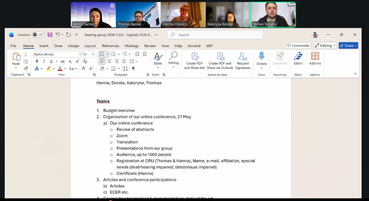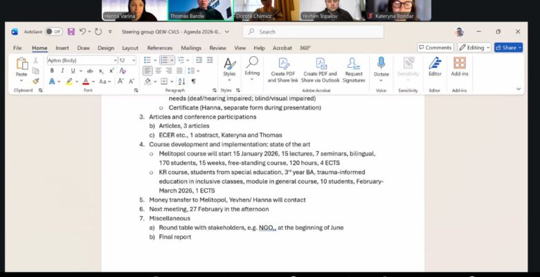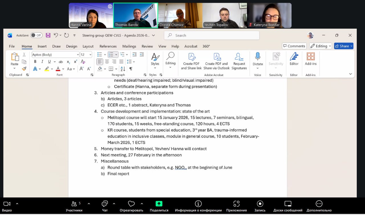 On 9 January 2026, an online meeting of the Steering Group of the international QEW-CVLS project was held, bringing together representatives of the partner institutions.