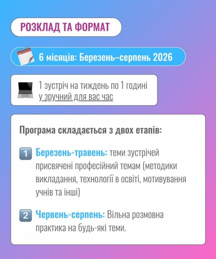 Ця унікальна програма поєднає українських вчителів з освітянами із США, Великої Британії, Австралії та Канади для щотижневх онлайн зустрічей 1-на-1.