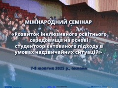 Міжнародний семінар «Розвиток інклюзивного освітнього середовища на основі студентоорієнтованого підходу в умовах надзвичайних ситуацій» – ТАМ захід (7-8.10.2025 р., онлайн формат