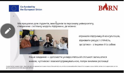 Міжнародний проєкт ERASMUS+ «Boosting university psychological resilience and wellbeing in (post-) war Ukrainian nation» (Посилення психологічної стійкості і благополуччя університетів у (після)воєнній Україні) (Грантова угода 101129379)