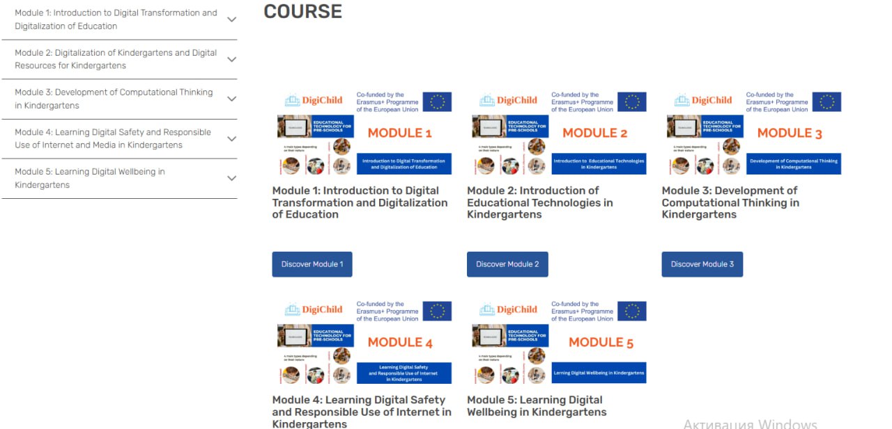 Module 4 “Learning Digital Safety and Responsible Use of Internet and Media in Kindergartens” accumulates the reflection on participants’ own experiences related to the safe usage of digital technologies for learning and teaching; it discusses the benefits and challenges of raising children in today’s digital age; gives the ideas how to improve their digital competence, create learning materials for the children, use them in the classroom, and reflect on their use. While learning on this Module participants think about the usage of educational technologies to nurture early childhood development; make informed decisions about which TV shows, movies, apps, and video games children watch and play; explore how to introduce digital citizenship and online safety in an accessible way with young children.
