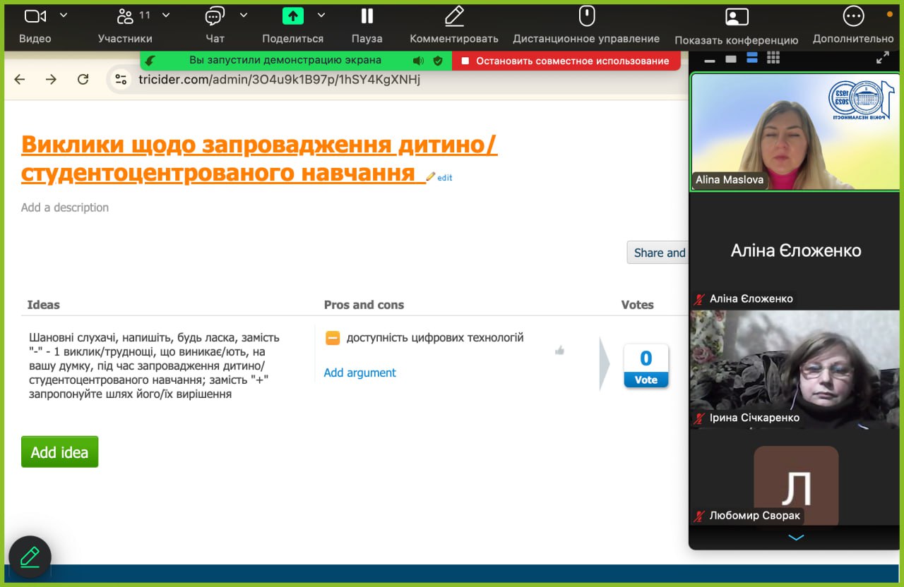 - розвинули вміння ефективного застосування цифрових освітніх технологій під час впровадження дитино/студентоцентрованого підходу в навчальному процесі.