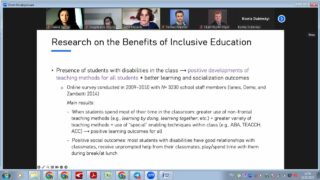 Першу доповідь представила Anna Frizzarin (Free University of Bozen-Bolzano, Italy), яка поділилася досвідом упровадження інклюзивної освіти в Італії. У доповіді було детально розглянуто механізми підтримки учнів з особливими освітніми потребами, зокрема через співпрацю між педагогами, асистентами, родинами та місцевими органами влади. Окрему увагу доповідачка приділила правовим засадам інклюзії та ролі інституційної підтримки в італійській системі освіти.