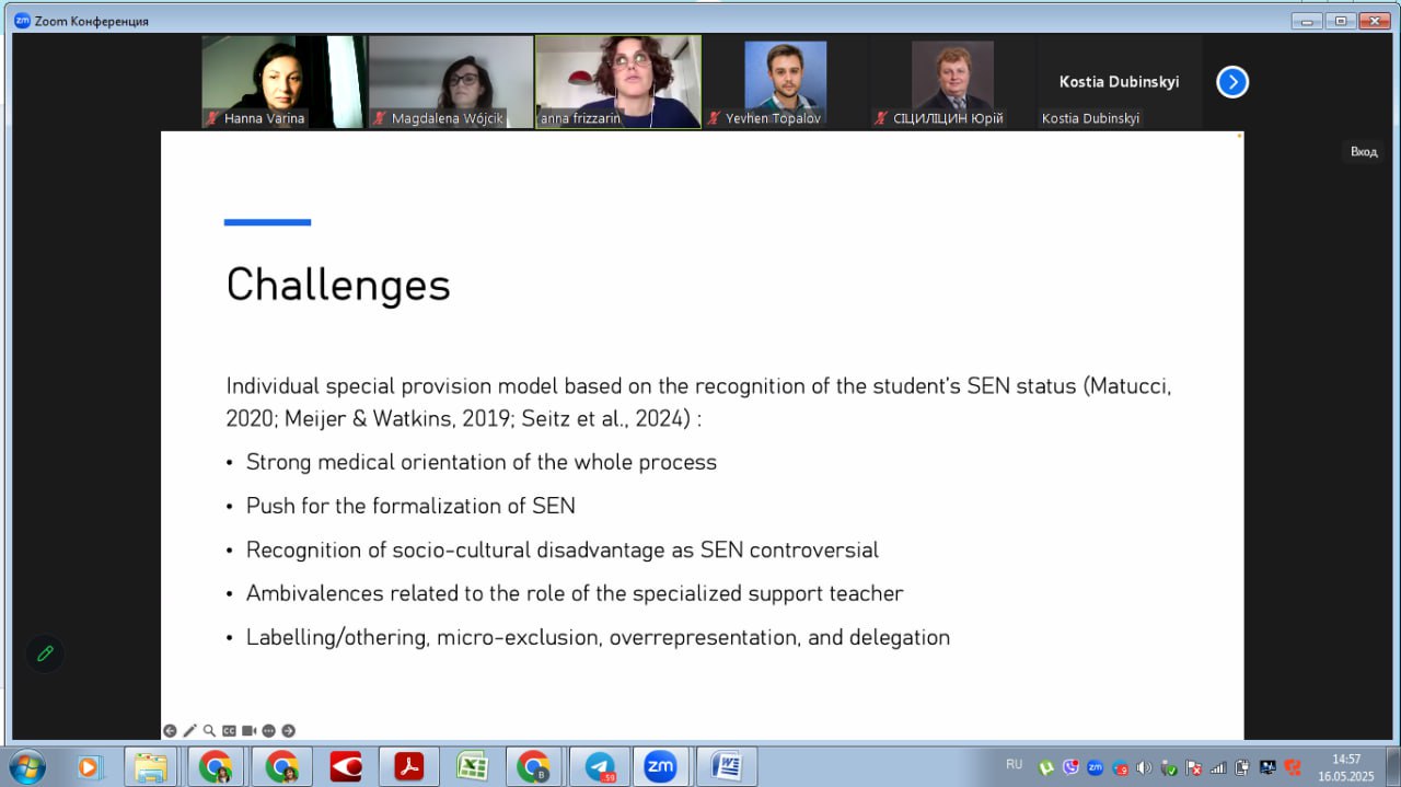 On May 16, 2025, an international online seminar entitled “Support and Inclusion in Regular Education” was held within the framework of the project Enhancing the Participation and Ensuring the Right to Education for Children with Intellectual Disability: Developing Capacities and Opportunities (EPERE), Reference No. 00787/2024. The seminar was dedicated to contemporary approaches to inclusive education in mainstream educational settings.