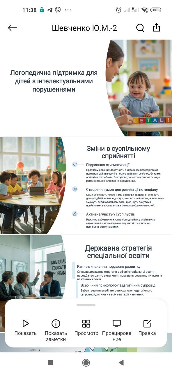 Особливості логопедичної підтримки дітей з інтелектуальними порушеннями в умовах інклюзивної освіти були висвітлені у доповіді Prof. Yuliia Shevchenko (Bogdan Khmelnitsky Melitopol State Pedagogical University, Ukraine), яка представила професійний досвід та практичні підходи до мовленнєвого супроводу дітей.